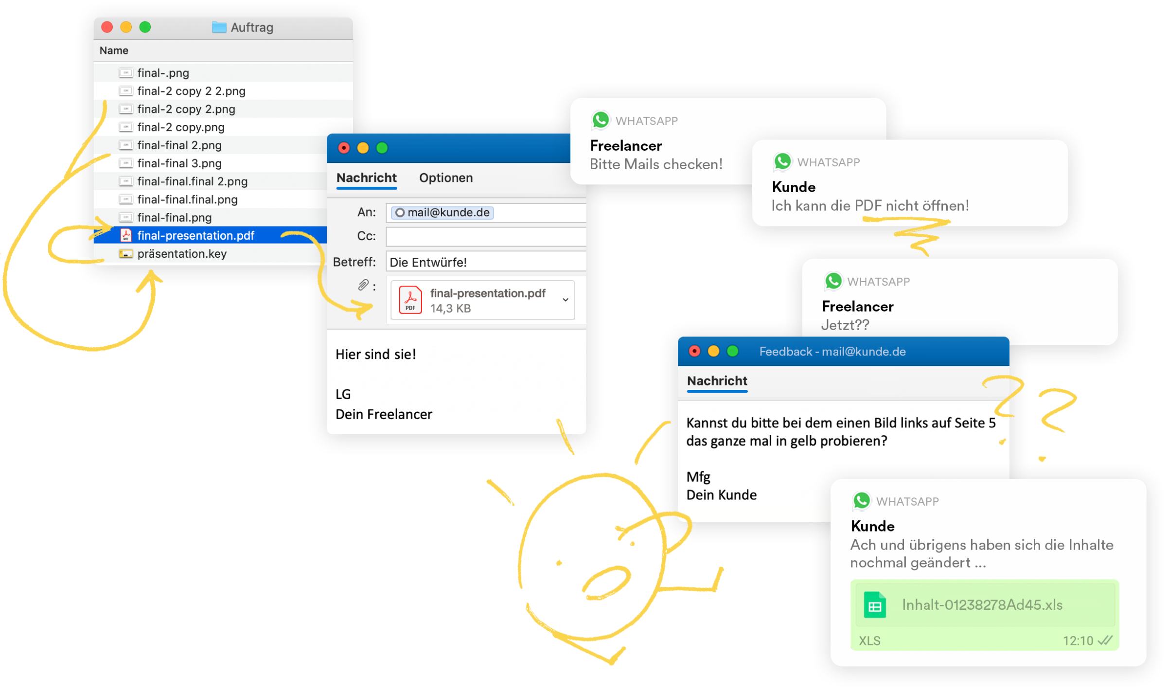 Du musst nicht mehr zwischen dutzenden Tools und wirren Ordnerstrukturen hin und her switchen.